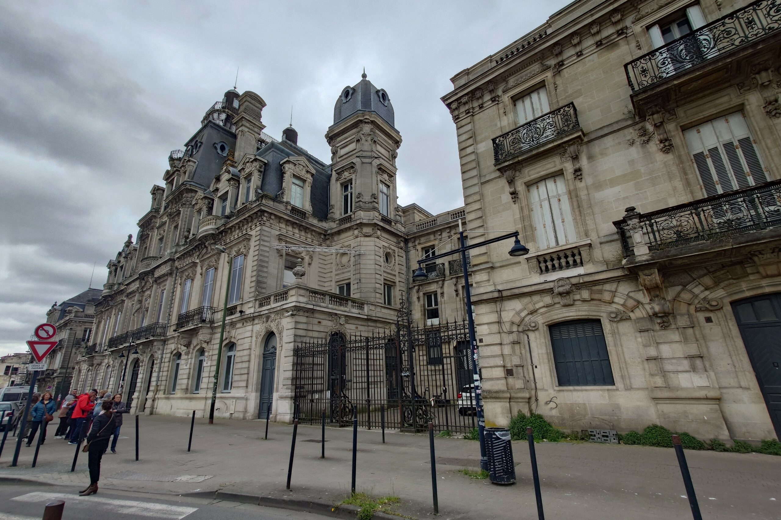 Vingt-huit personnes ont participé à ce programme. Trajet aller en train jusqu’à la gare Saint Jean, nous nous sommes dirigés vers le Château Descas en longeant le grand chantier de la future « Canopia » (grande trouée verte allant de la gare jusqu’aux quais qui intégrera 9 000 m² dédiés à l’hôtellerie, 6 500 m² de bureaux, et 6 000 m² consacrés aux logements, complété par 13 000 m² d’espaces publics extérieurs aménagés. Le tout devrait être livré d’ici 2026).