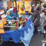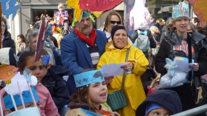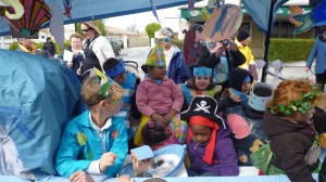 dont la décoration a été entièrement réalisée par les enfants du quartier lors des ateliers préparatoires organisés par le Comité et animés par les bénévoles. Tout le long du trajet de nombreux spectateurs ont suivi et applaudi le défilé et c’est en chansons (sur le thème de la mer) et sous la direction de leur institutrice que les enfants ont clôturé le défilé, place de la Mairie, devant le jury du Carnaval.